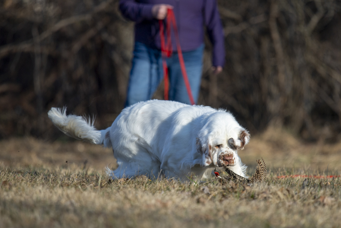 This is a fun, relaxed, and encouraging activity. The clinic consists of trainers working individually with each dog and handler. Each dog gets 10-15 minutes in the field, including bird contact (e.g., flush or point, and maybe a retrieve). Trainers get the dogs excited about the birds, and then the dogs are able to scent and find a bird, triggering their basic hunting instincts. Live birds are used, but there is no gunfire and flushed birds fly away. Clinics are run by AKC hunt test judges and experienced handlers for flushing, pointing, and retrieving breeds.